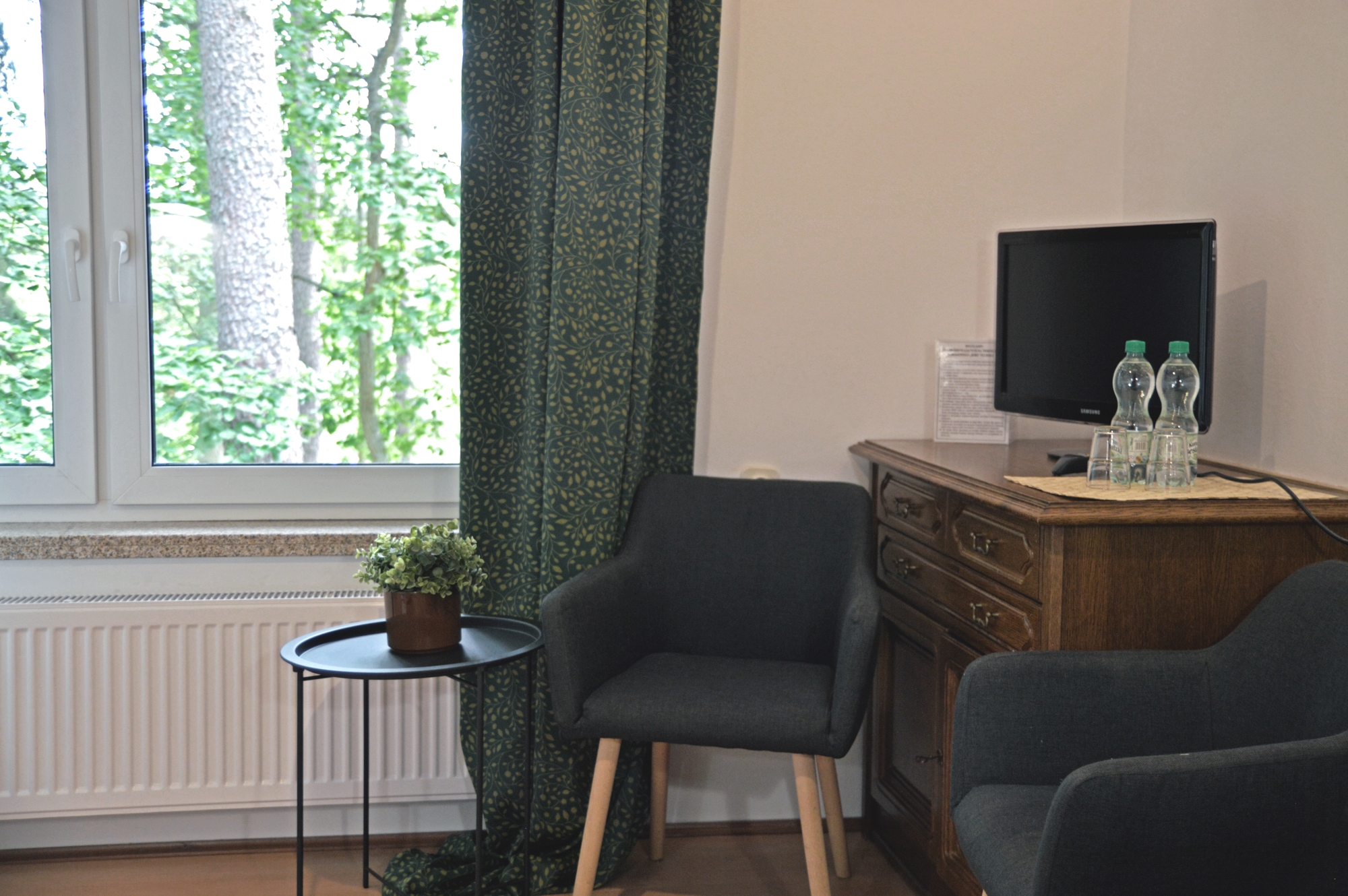 Dysponujemy klimatyczną i przestrzenną restauracją śniadaniową, a widok z okien rozprzestrzenia się na piękne tereny zielone.