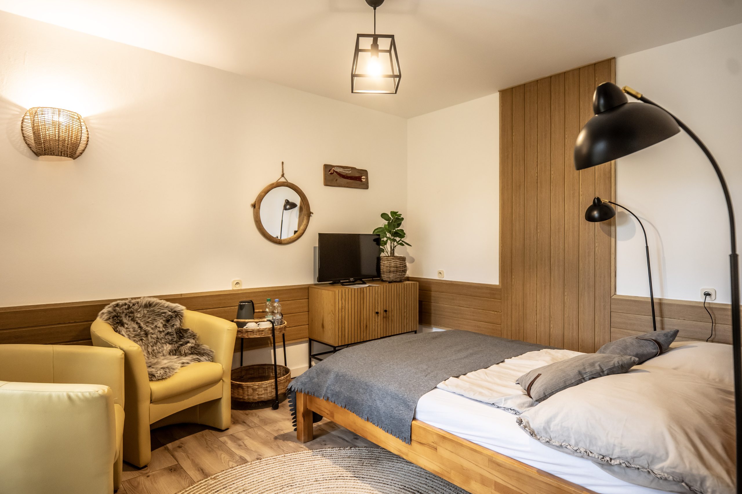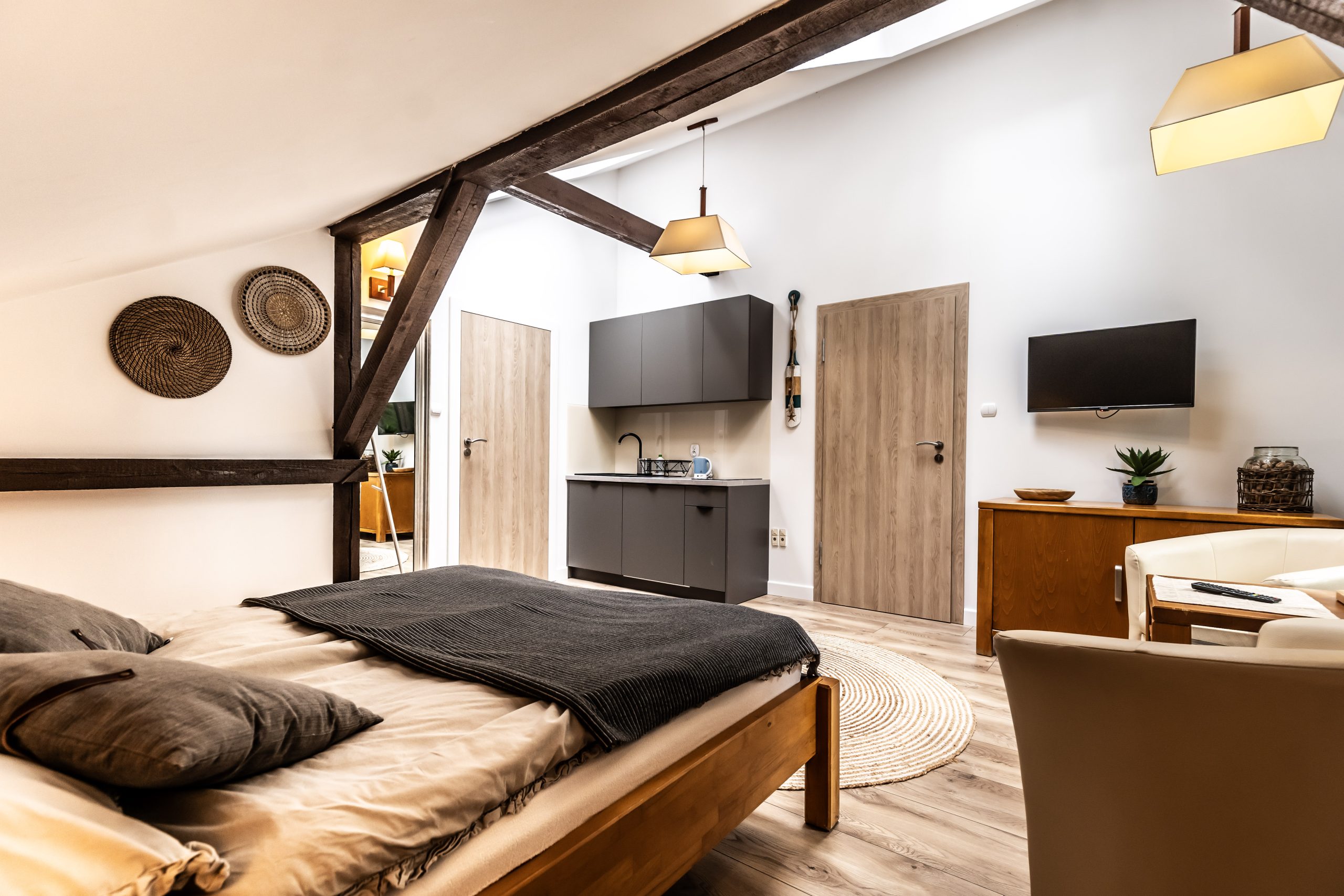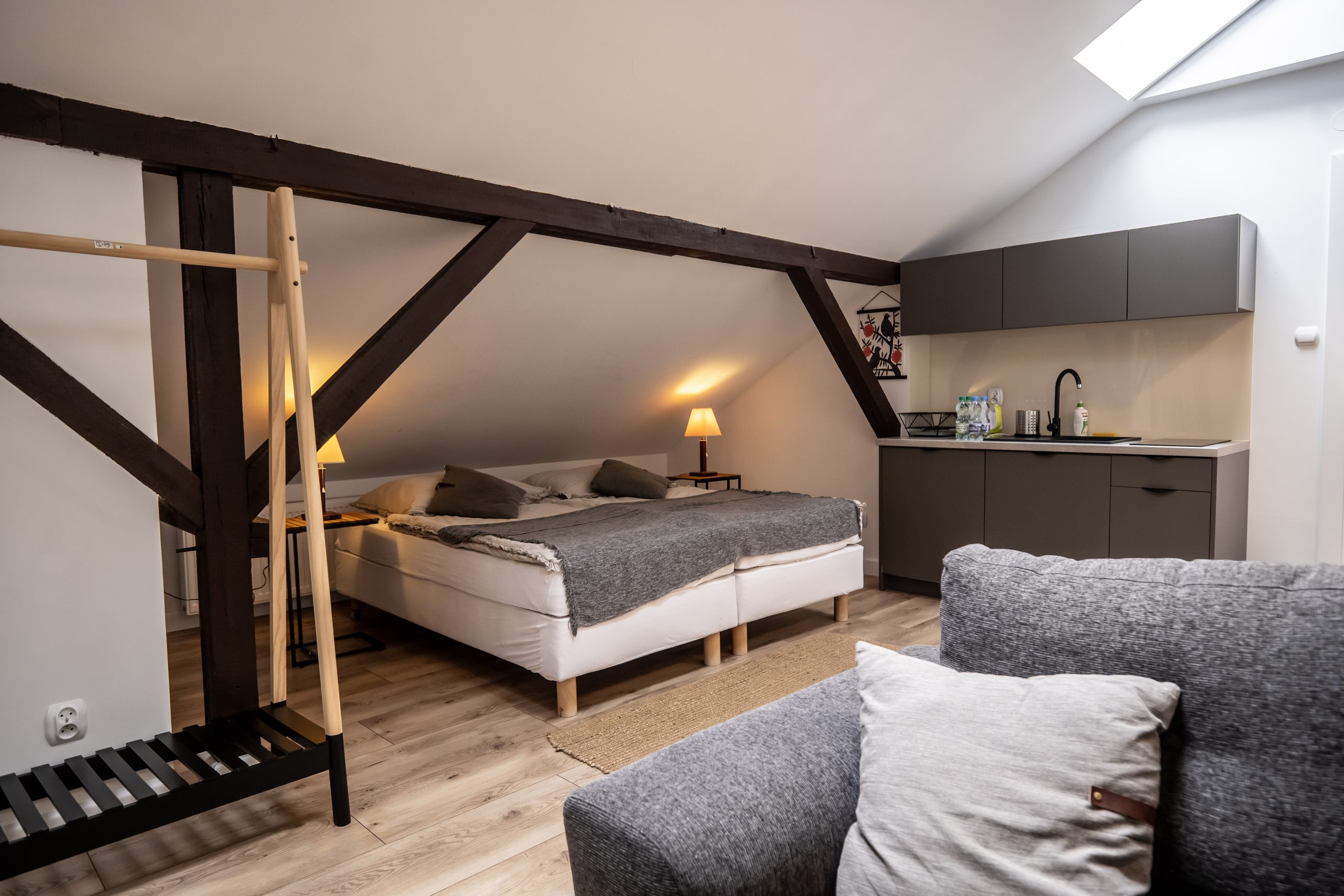 Dysponujemy przestrzennymi i funkcjonalnymi pokojami typu studio, wyposażonymi w aneksy kuchenne oraz dwupokojowymi apartamentami. Nasi goście mogą również wybierać między pokojami typu komfort i standard. Oferujemy gościom 19 pokoi, w których możemy ugościć 50 gości. Pokoje są przystosowane do pobytu dla 2, 3 i 4 osób.