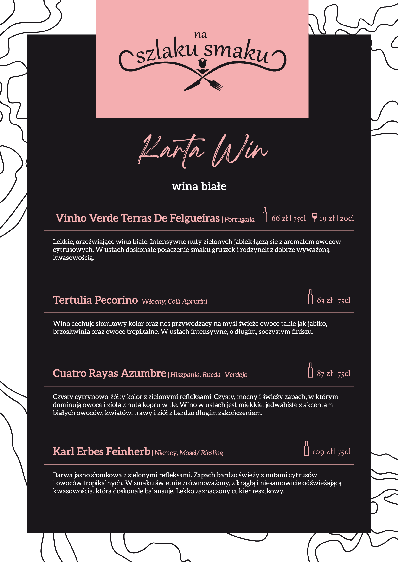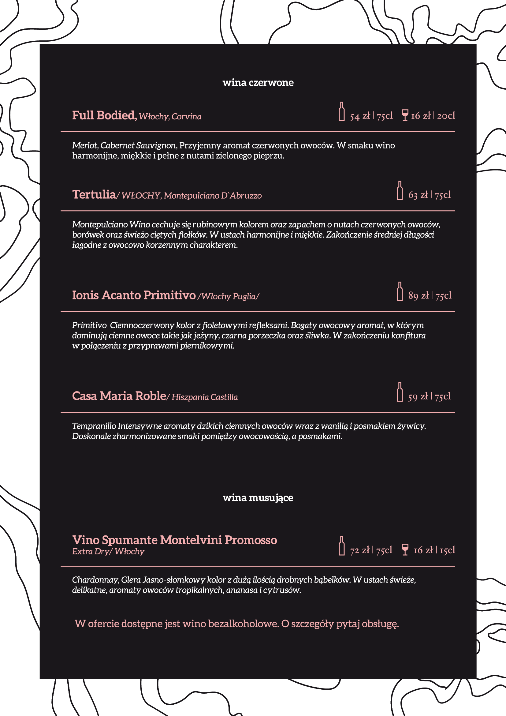 Wina to pozycje dobrane tak, aby każdy znalazł coś odpowiedniego dla siebie. Zapoznaj się z menu.